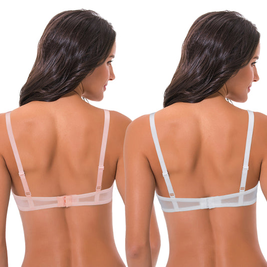 Women's Plus Size Unlined Semi-Sheer Balconette Underwire Lace Bra