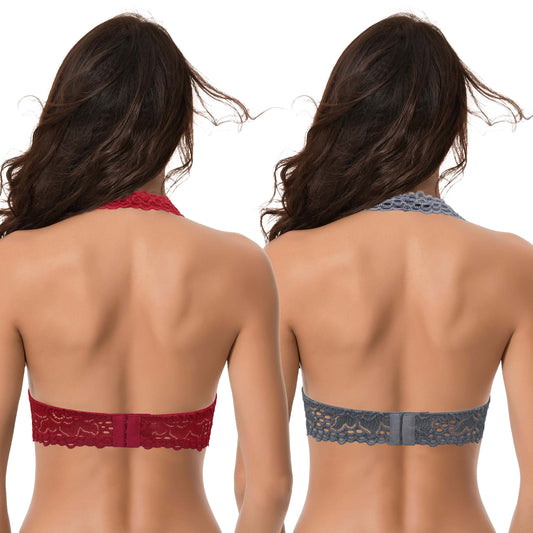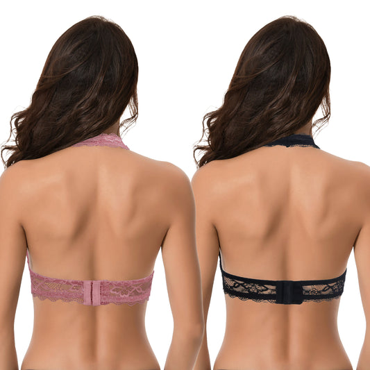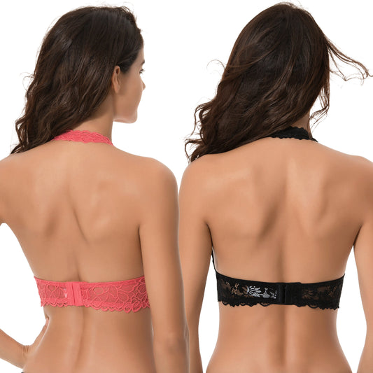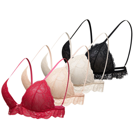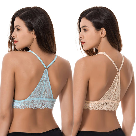 Women's Lace Plunge Unlined Wirefree Bralette with Thin Adjustable Straps Unpadded