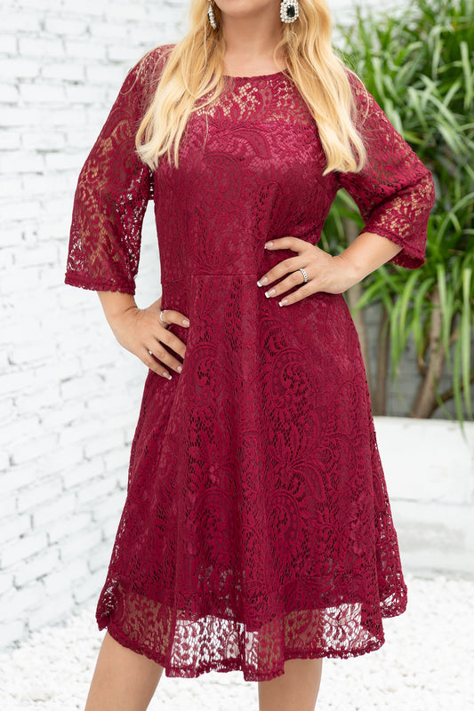 Women's Plus Size Floral Lace 3/4 Sleeve Round Neck Dress