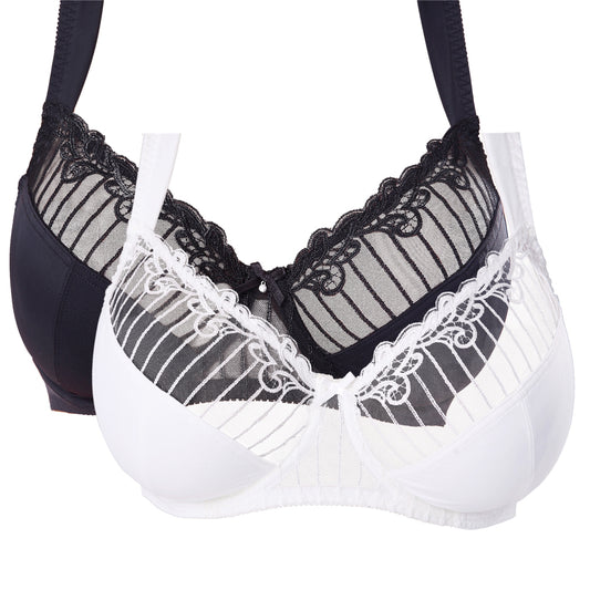Plus Size Minimizer Underwire Unlined Bra with Embroidery Lace