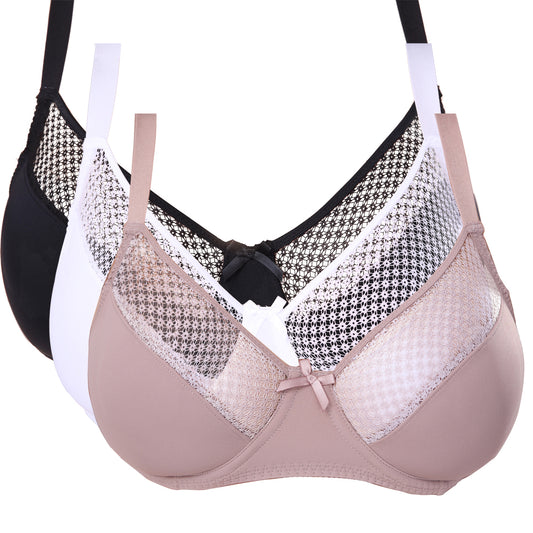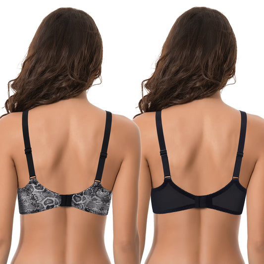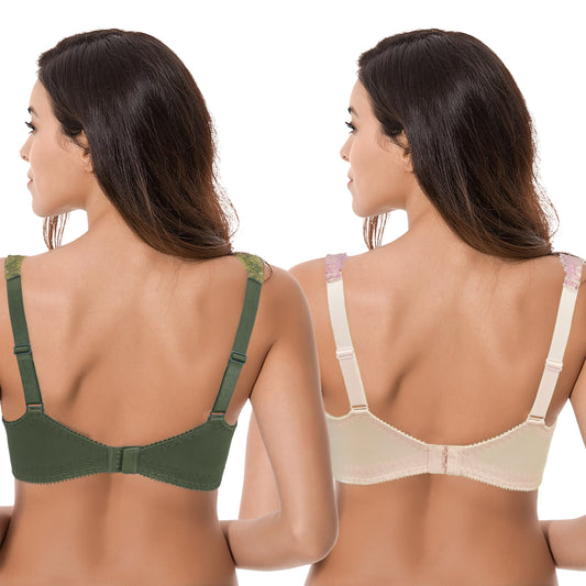 Women Plus Size Minimizer Underwire Unlined Bra with Embroidery Lace
