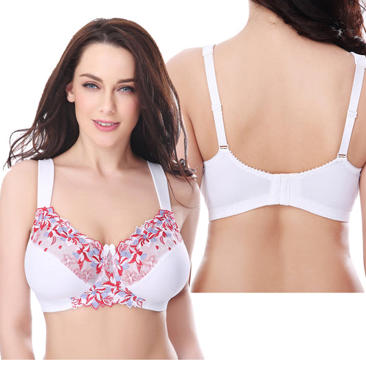 Plus Size Minimizer Unlined Wireless Bra with Lace Embroidery