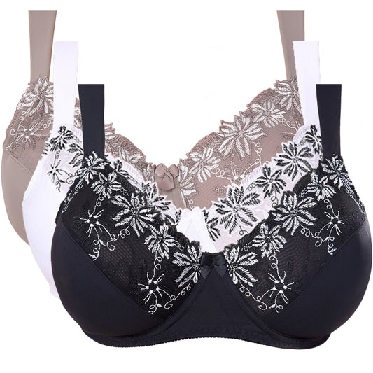 Plus Size Minimizer Underwire Bra With Lace Embroidery