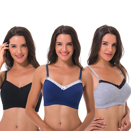 Plus Size Nursing Cotton Unlined Wirefree Bra With Lace Trim