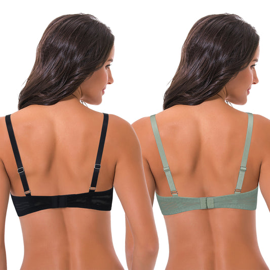 Women Plus Size Underwire Add 1 and a Half Cup Push Up Lace Mesh Bra
