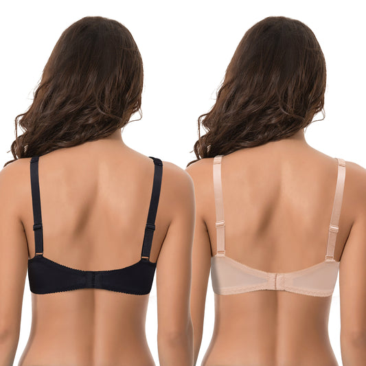 Women's Plus Size Unlined Underwire Lace Bra with Cushion Straps