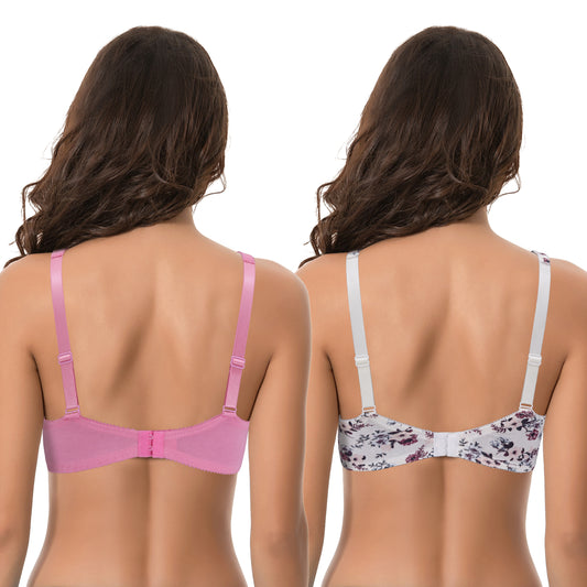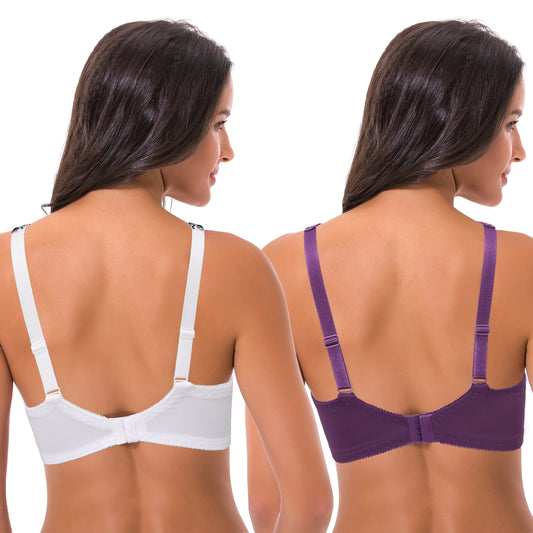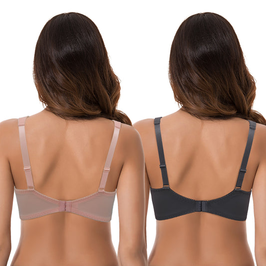 Women Plus Size Minimizer Underwire Unlined Bra with Embroidery Mesh