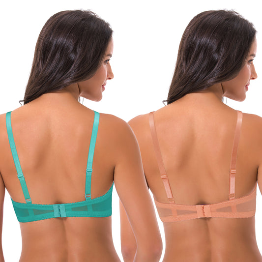 Women's Underwire Plus Size Push Up Add 1 and a Half Cup Lace Bras