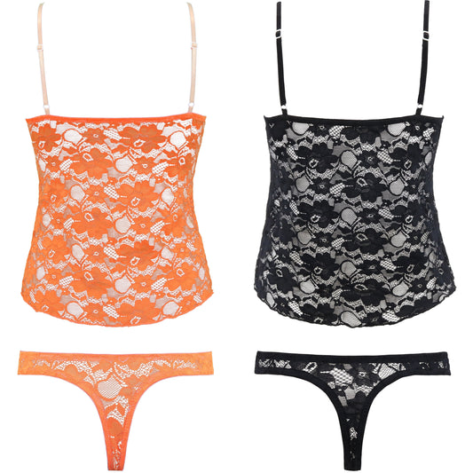 Women's Satin Lingerie Lace Camisole Tank Top With Shorts Pajama Set