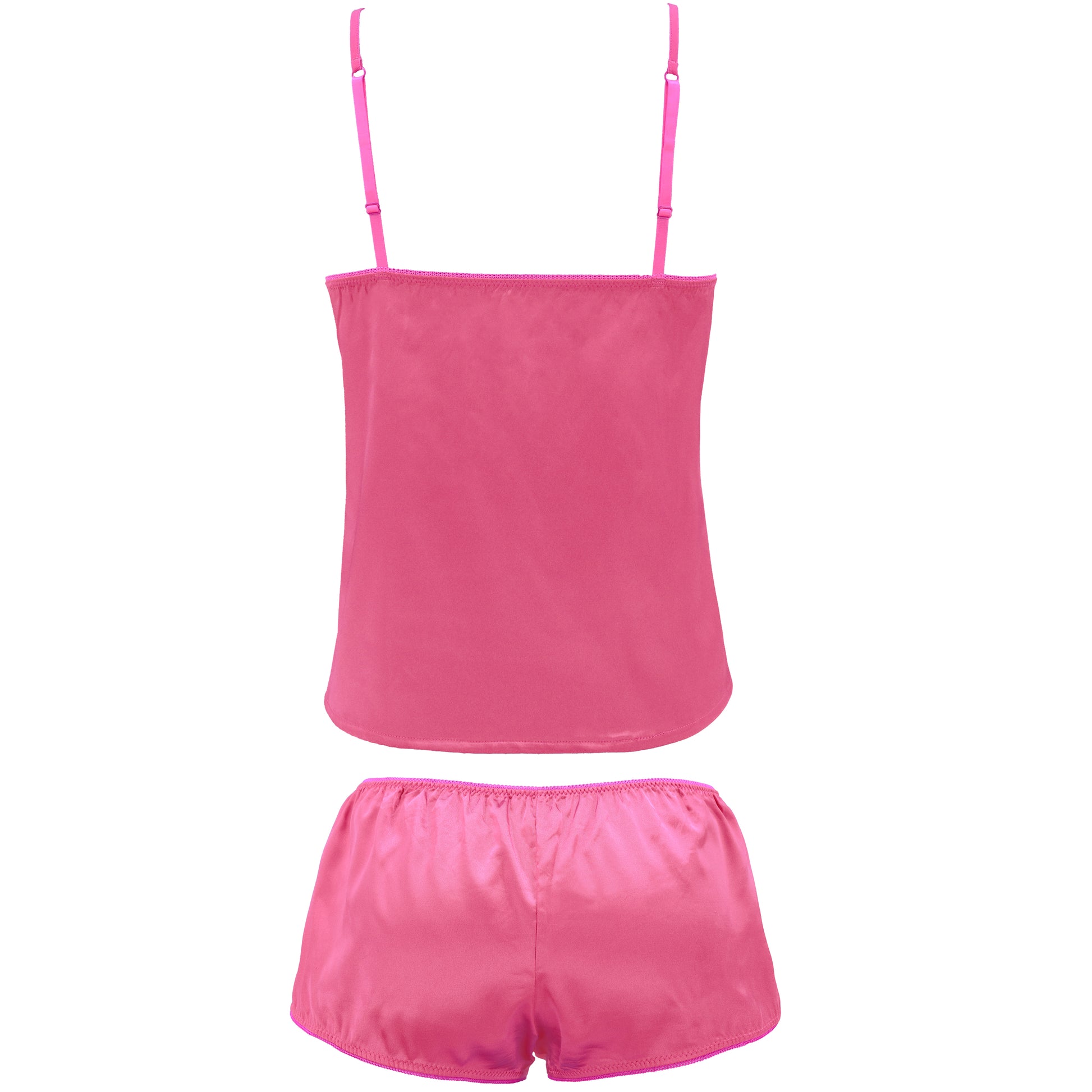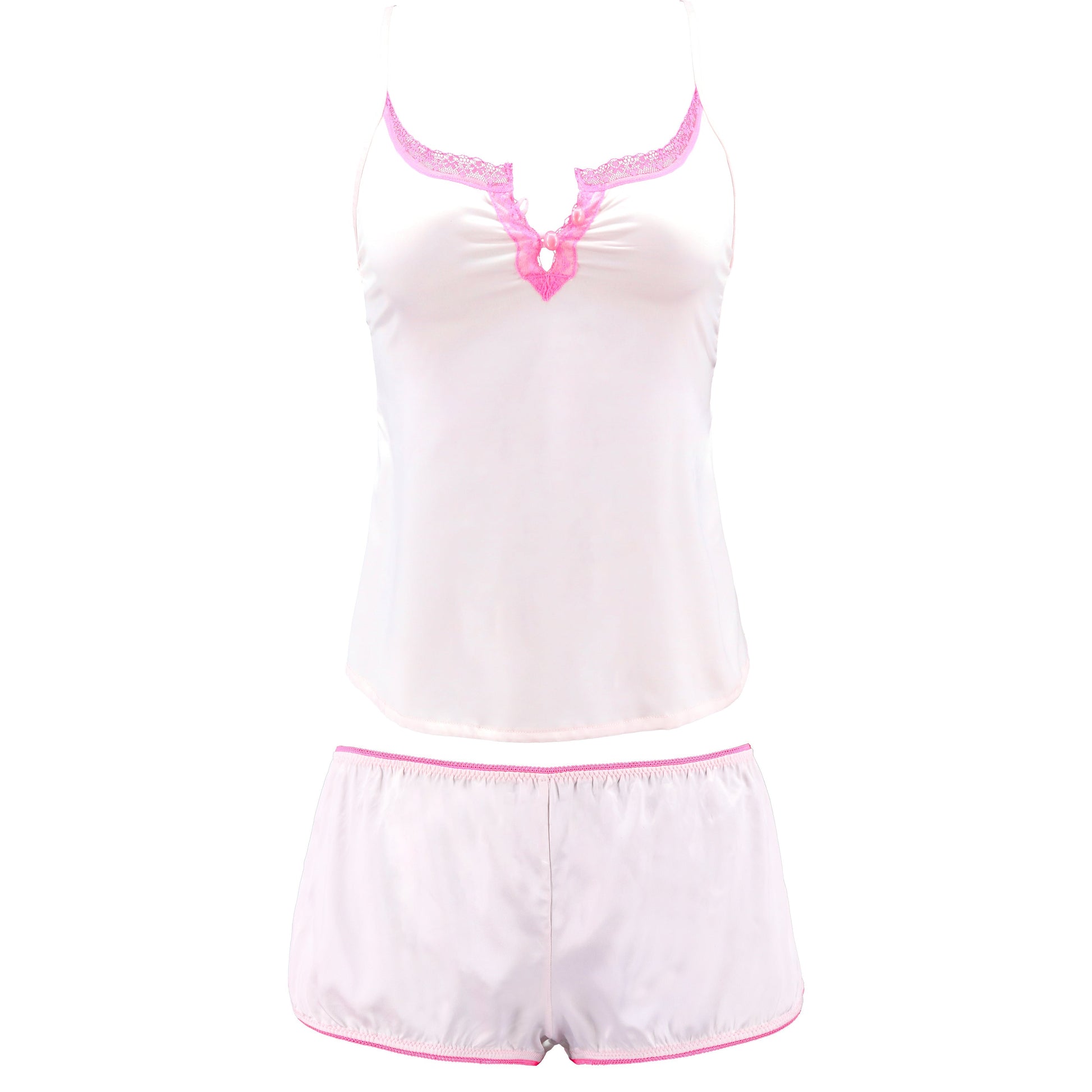 Women's Satin Lingerie Lace Camisole Tank Top With Shorts Pajama Set