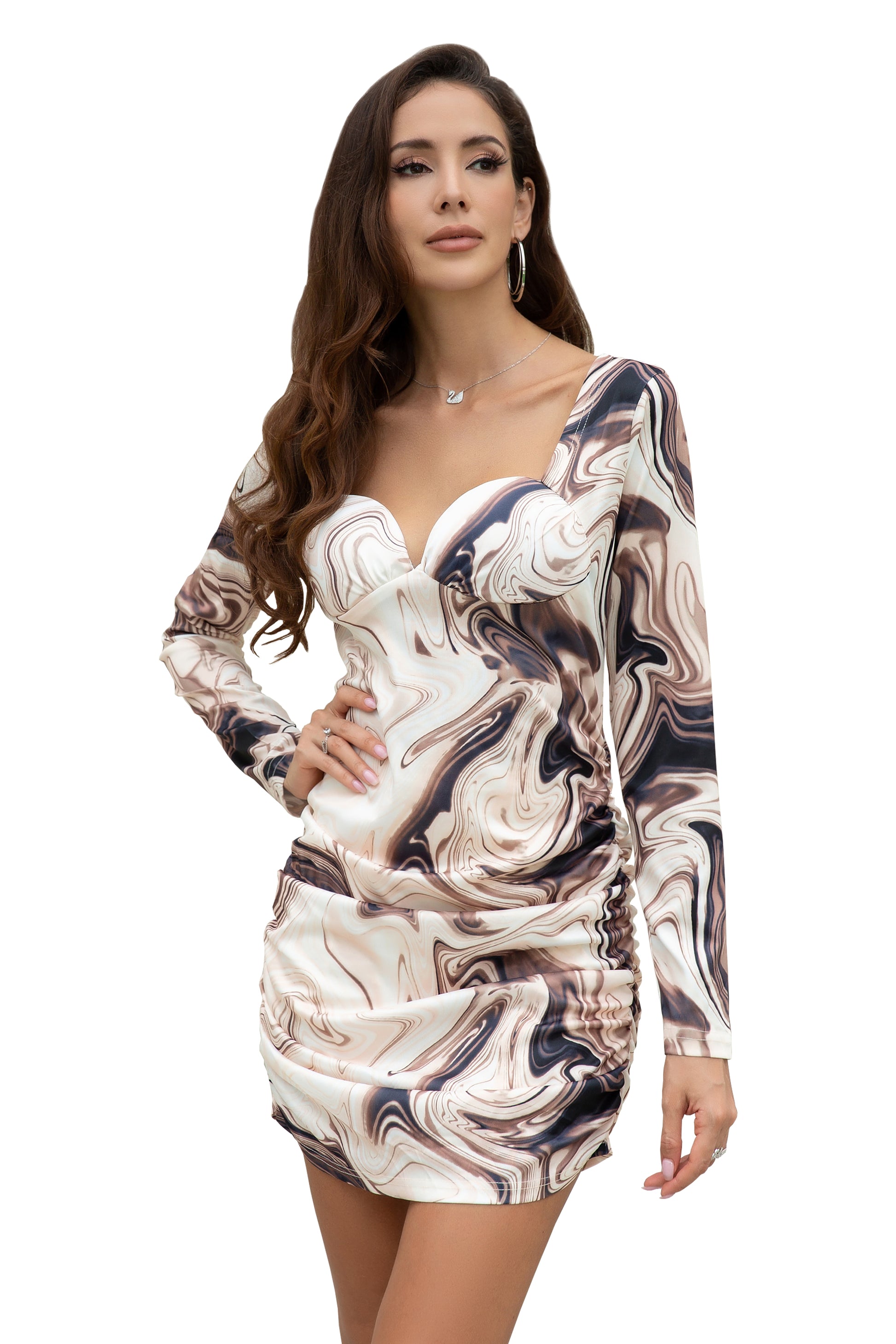Women's Long Sleeve Sweetheart Neck Ruched Side Cocktail Dress