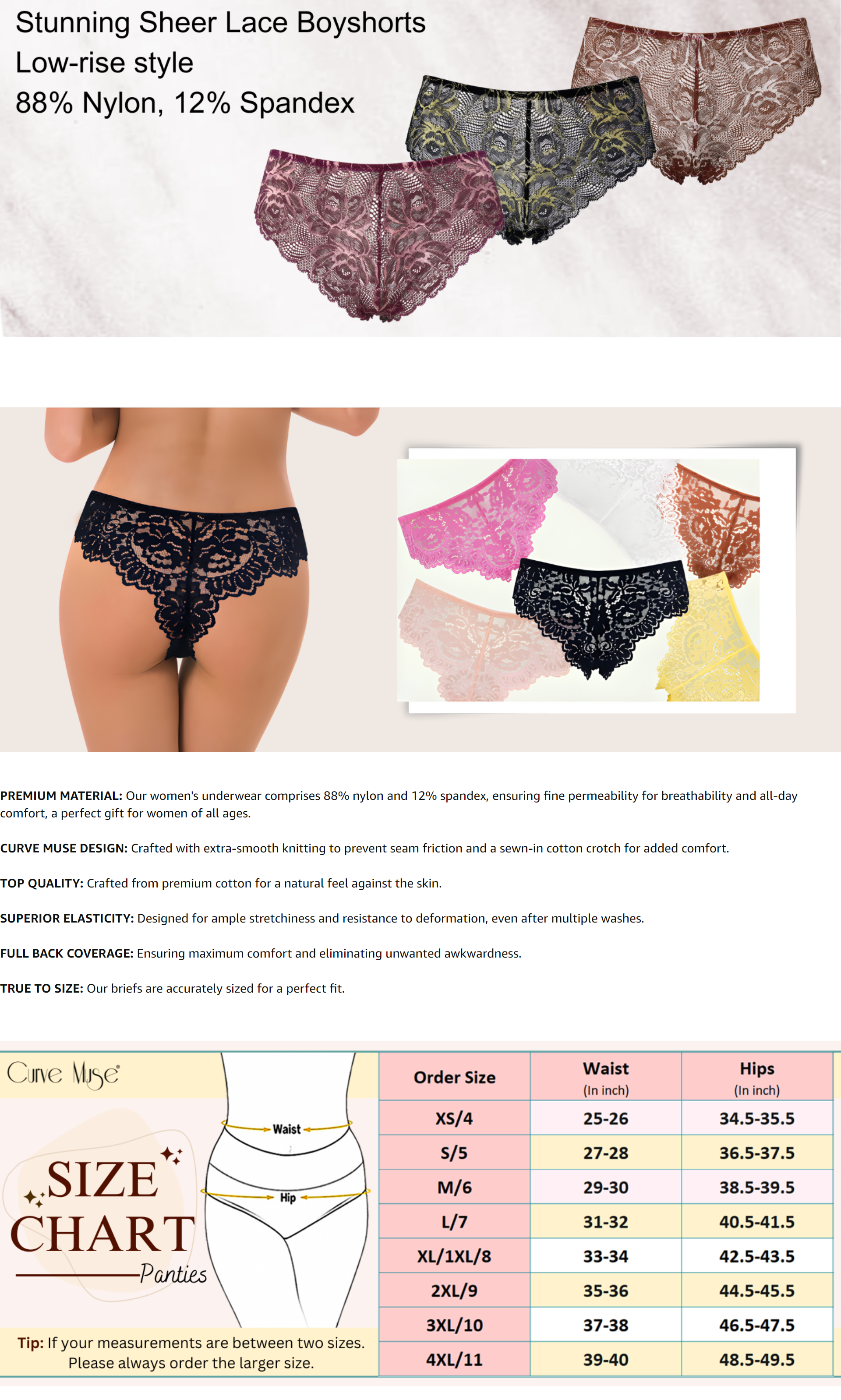 Women's Comfort Lace Tanga Hipster Boyshorts Panties